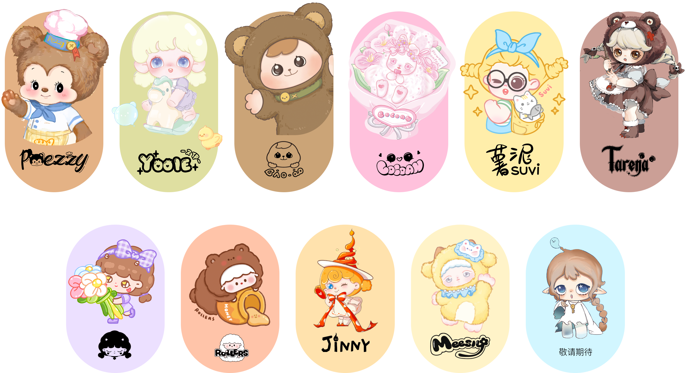 - 先后发售《薯泥梦幻日记系列盲盒》《羊小囤mini动物乐园系列盲盒》《Meesiy守护精灵系列毛绒盲盒》